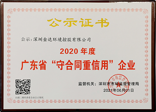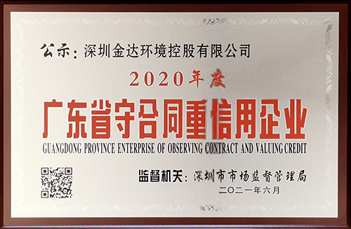 近期,深圳市市場監(jiān)督管理局公示了2020年度廣東省守合同重信用企業(yè)審核結果,深圳金達環(huán)境控股有限公司憑借規(guī)范治理和誠信經(jīng)營榮獲廣東省守合同重信用企業(yè)稱號。